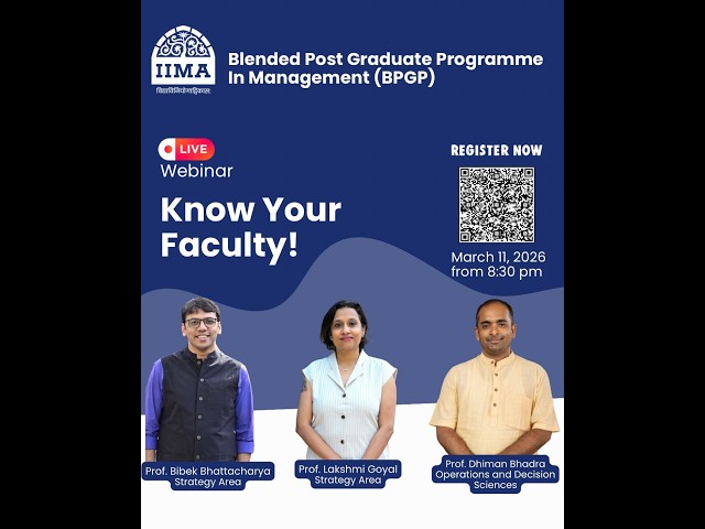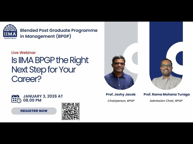 The Blended Post Graduate Programme in Management (BPGP) offered by IIMA is a two-year, degree-granting programme designed to strengthen the managerial skills of working professionals. Combining in-person and live online sessions, the programme offers flexibility while maintaining academic rigor, in line with the growing global preference for hybrid learning models.
