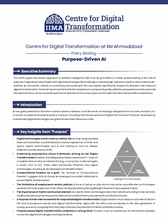 The Centre’s vision is to take its place as a thought leader, guiding India, Asia, and the world as digitalization rapidly penetrates every area of life. The Centre’s mission is to help the country and world develop skill sets that bring about responsible digital transformation to guide organizations as they transform and are transformed by digitalization, to inform policy-makers as they confront new challenges