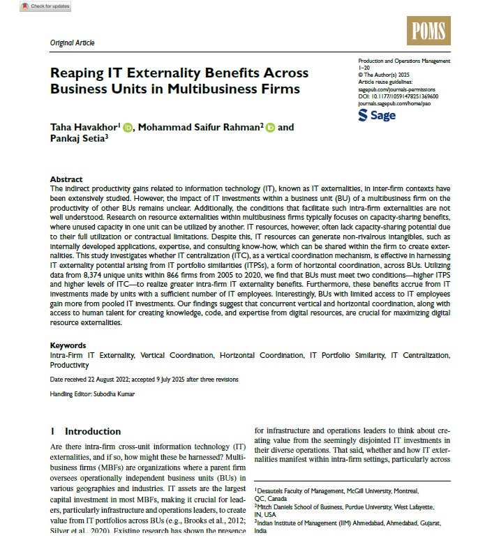 The IIMA Chair Professor and Professor of Operations and Decision Sciences