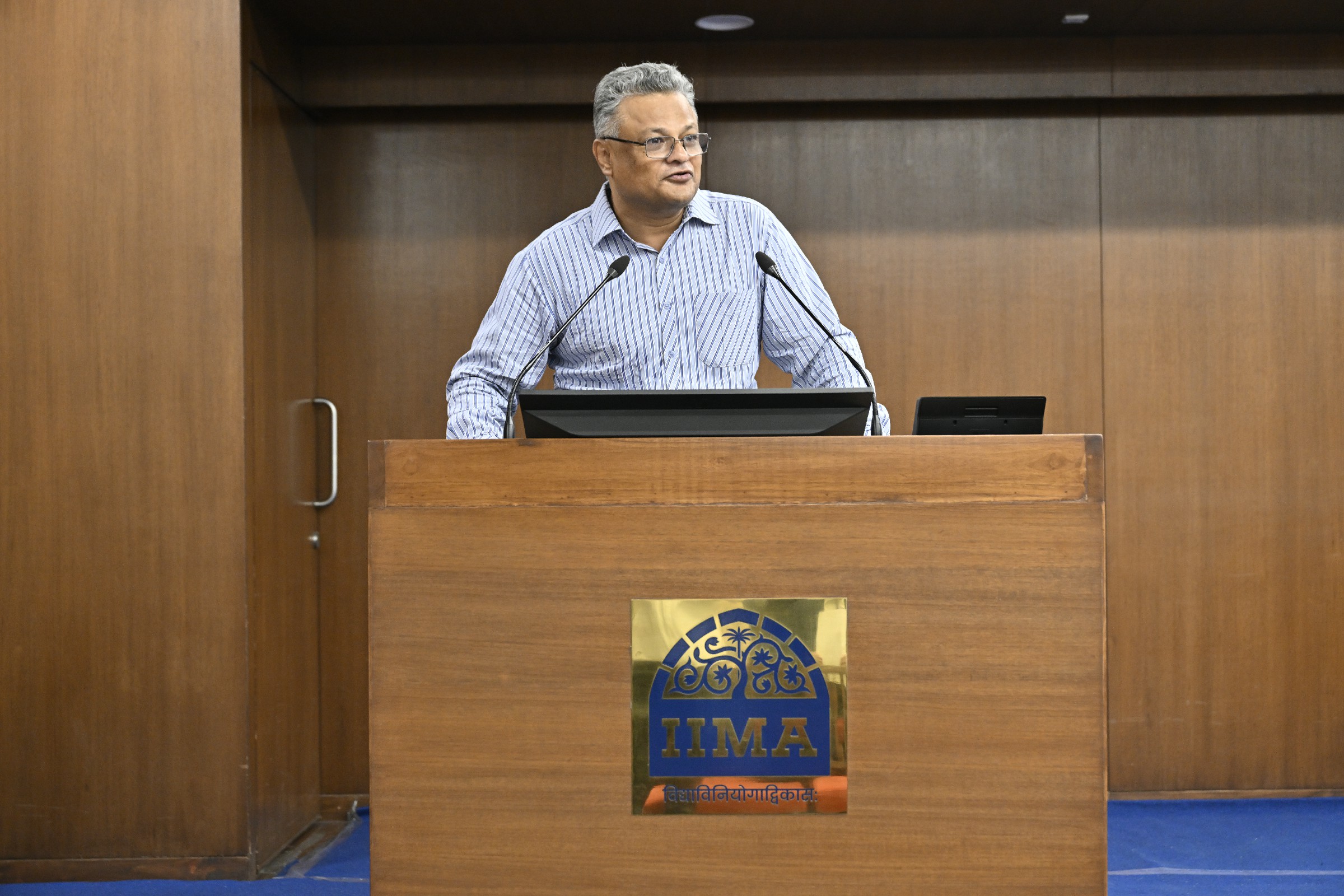 Welcoming the pioneer batch of the programme, Professor Anindya Chakrabarti, Chairperson, BPGP: BA & AI, gave an overview of the programme and acknowledged the significance of the moment, saying, “Today is a special day for the Institute and a defining moment for everyone in this room, as we launch IIMA’s very first technical MBA programme under the Krishnamurthy Tandon School of AI. The BPGP: BA & AI reflects the rapidly evolving landscape of business practices, wherein the integration of business analytics and artificial intelligence is no longer optional, but essential. As the pioneering batch, you will not only be participating in this transformative journey but also shaping the future identity of the programme.”