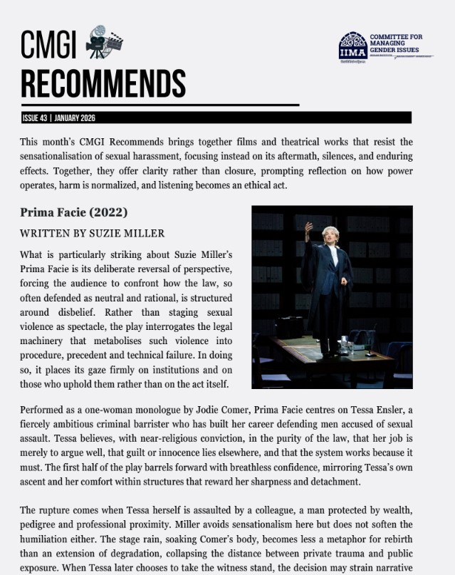 The Indian Institute of Management Ahmedabad (“IIMA”) has set up an Internal Committee known as the Committee for Managing Gender Issues (“CMGI”) in accordance with the Sexual Harassment of Women at Workplace (Prevention, Prohibition and Redressal) Act and Rules, 2013 and regulations applicable to higher educational and technical institutions. The objective of CMGI goes beyond what is mandated by the Act and rules: CMGI is not only confined to dealing with complaints of Sexual Harassment faced by women but also members of other genders. CMGI is committed to creating awareness and sensitization within the community regarding various forms of Sexual Harassment.