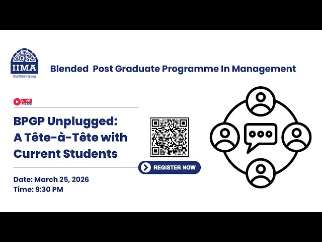 The Blended Post Graduate Programme in Management (BPGP) offered by IIMA is a two-year, degree-granting programme designed to strengthen the managerial skills of working professionals. Combining in-person and live online sessions, the programme offers flexibility while maintaining academic rigor, in line with the growing global preference for hybrid learning models.