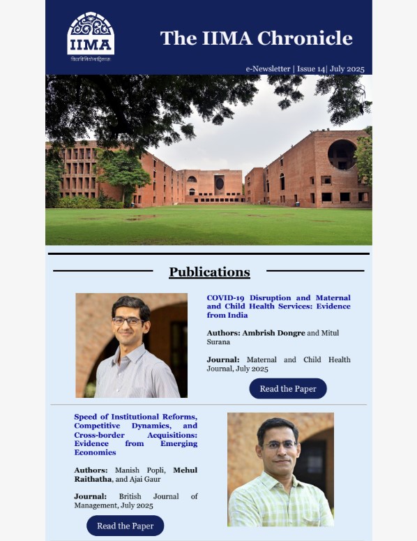 At IIMA, research is grounded in real life problems and never loses sight of the Institute’s responsibility to the economy and to society. It is fully conscious of the demands of leadership for today … and, more importantly, for tomorrow.