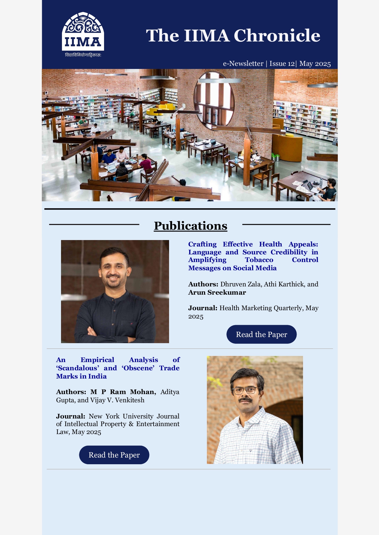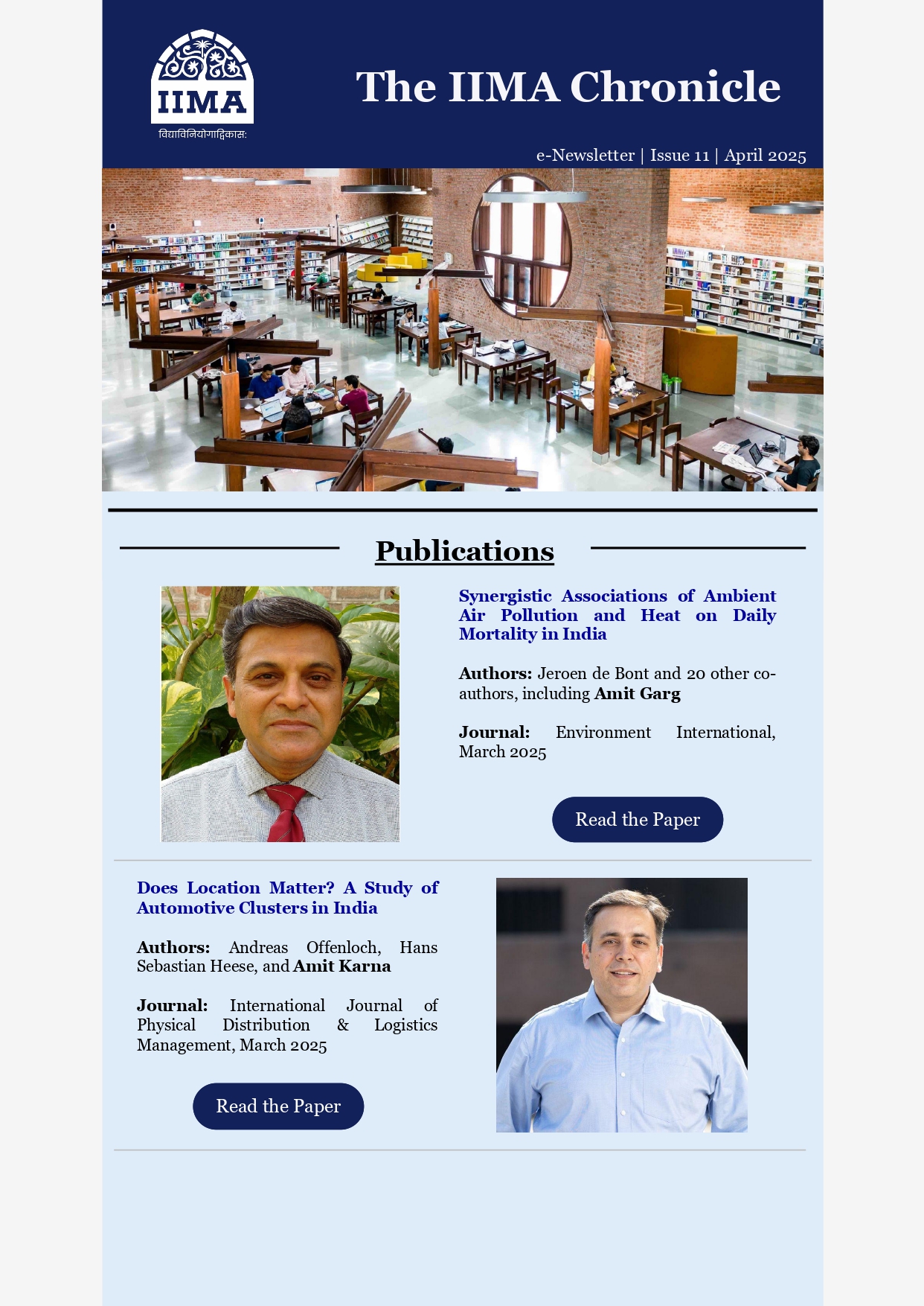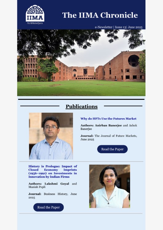 The IIMA Chronicle Home Faculty & Research The IIMA Chronicle Our Faculty Research & Publications Case Centre Academic Areas Research Centres JSW - SPP IIMA Knowledge Centres Faculty Recruitment Connect with Us The IIMA Chronicle 2025 Issue 17 - October 2025 Issue 16 - September 2025 Issue 15- August 2025 Issue 14 - July 2025 Issue 13 - June 2025 Issue 12 - May 2025 Issue 11 - April 2025 Issue 10 - March 2025 Issue 9 - February 2025 Issue 8- January 2025 2024 Issue 7- December 2024 Issue 6 - November 2024 Issue 5 -October 2024 Issue 4 - September 2024 Issue 3 - August 2024 Issue 2 - July 2024 Issue 1- June 2024