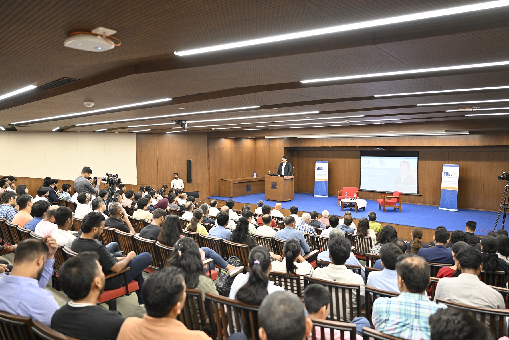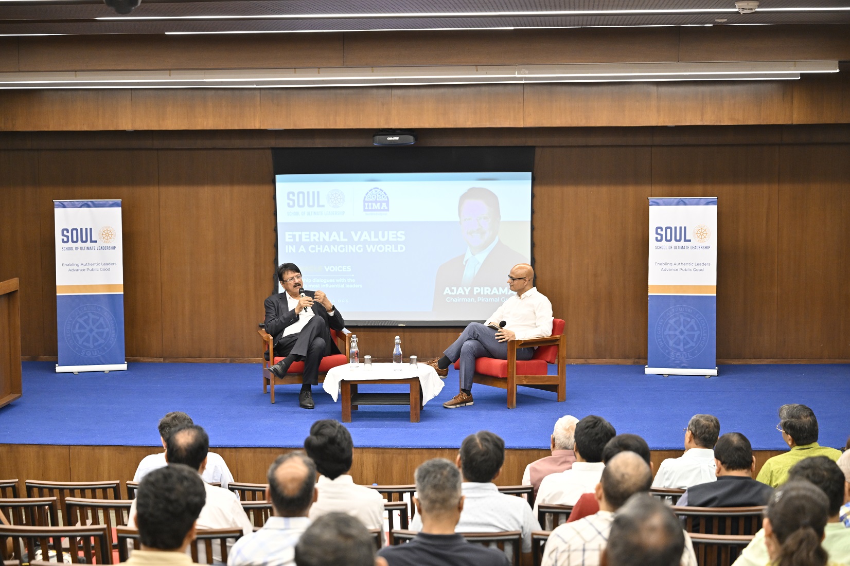 October 12, 2024: The Indian Institute of Management Ahmedabad (IIMA) MBA-PGPX, in collaboration with the School of Ultimate Leadership (SOUL), Ahmedabad, recently organised a joint Speaker Session featuring Mr. Ajay Piramal, Chairman of the Piramal Group as the keynote speaker, as a part of the MBA-PGPX Speaker Series by IIMA and the Pinnacle Voices Leadership Series by SOUL. Mr. Piramal’s session, titled ‘Eternal Values in a Changing World’, emphasised the importance of integrity, compassion, and ethical leadership during times of volatility and transformation. The MBA-PGPX Speaker Series at IIMA aims to invite industry leaders on campus to share their learnings and insights with the students and the Pinnacle Voices Leadership Series is SOUL’s flagship initiative aimed at showcasing visionary leaders who embody ethical leadership and values-driven success. The series invites thought leaders from diverse sectors to share their insights, inspire, and engage with a broad audience of current and future leaders.