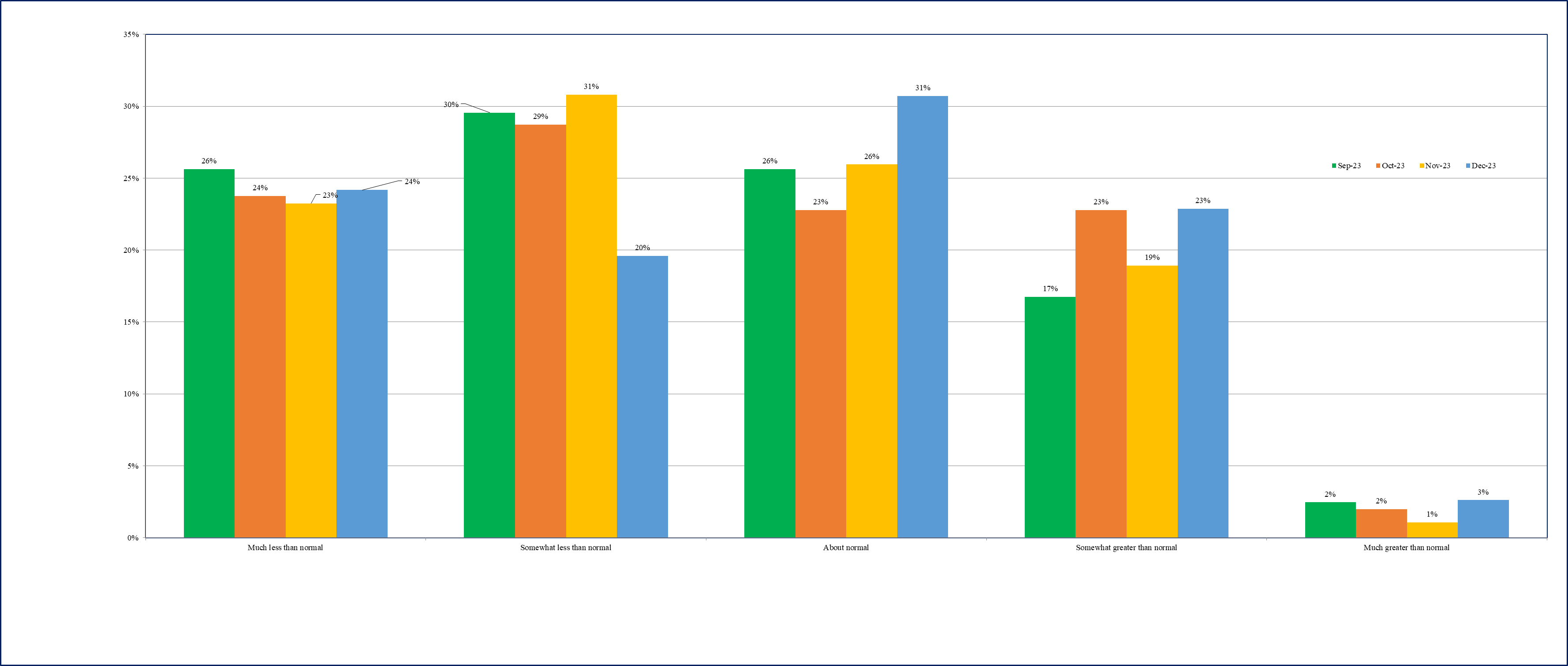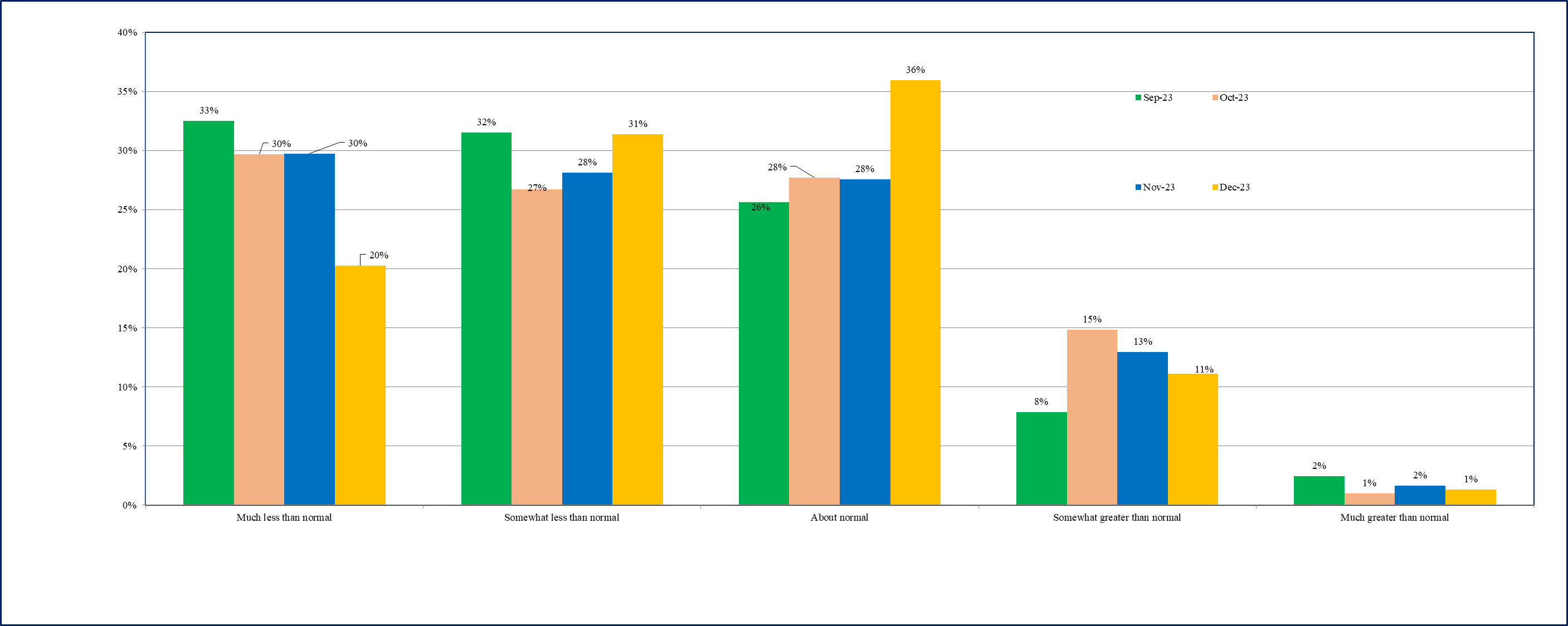Around 48% of the firms in December 2023 are reporting profit margins to be ‘about normal’ or greater – significantly up from 43% reported in November 2023 (Chart 5).