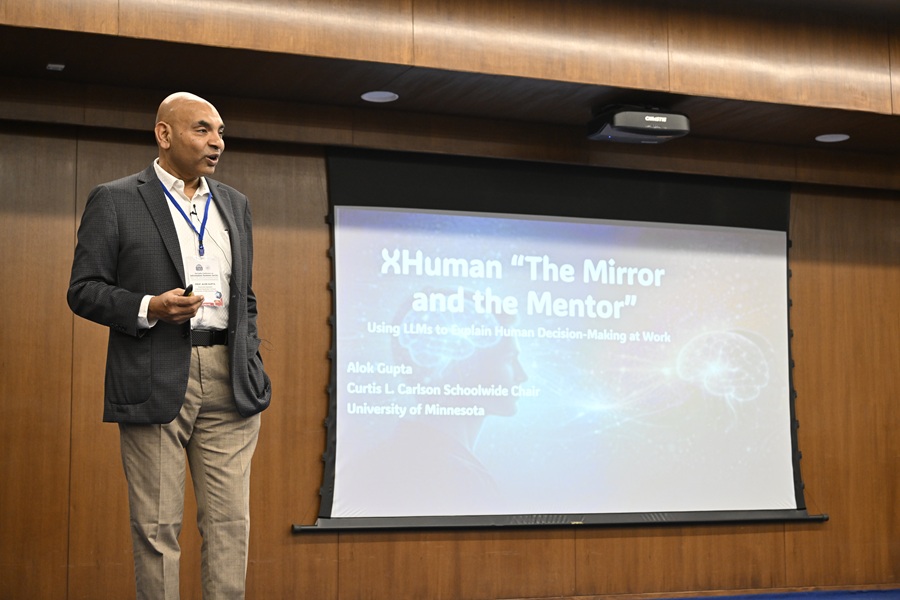 Prof. Alok Gupta, Curtis L. Carlson Chair in Information Management, University of Minnesota, presented the academic keynote and urged the audience to think of artificial intelligence as a mirror and a mentor to better understand human expertise and decision-making patterns. He said, “The strength of human beings has always been our mental ability to think and create with our minds. AI does not emphasise compatibility with human decision-making. It can be used to extract human knowledge and understand our strengths and weaknesses. If we use AI as a mirror to reflect on how we think and make decisions, we can develop a more explicit understanding of our own processes. That understanding can help us improve ourselves and build on our capabilities with the support of AI.”