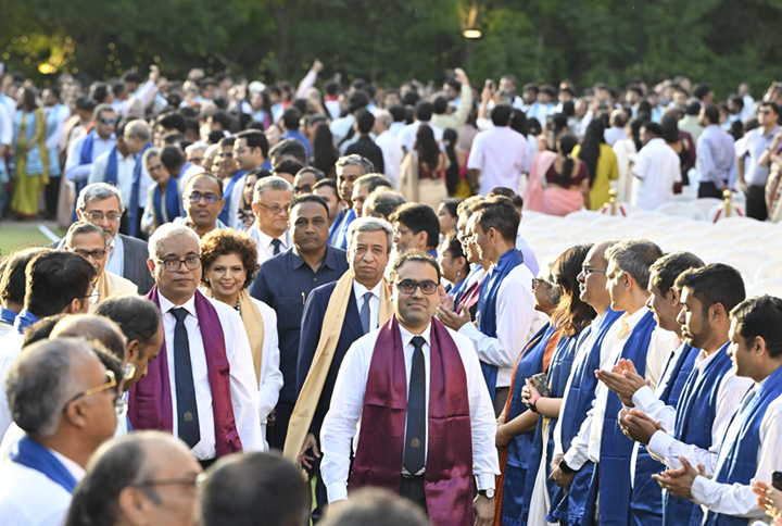 Delivering the Convocation Address, Ms. Chandrika Tandon, Business Leader, Humanitarian, Grammy-Award Winning Musician, encouraged the students to embrace what she described as the four guiding mantras for “Integrative Intelligence”: Insight, Intention, Inner stillness, and Impact. She said, “You need to get out of your bubble, whatever it is. Explore strategically. Think critically. Do not get stuck on a single path, because breakthroughs do not happen in the lanes. They happen at the intersections. Learn about the world far from you continuously. Insight gives you perspective. But you need intention to move from an accidental to an intentional life. You need intention to execute right with clarity and commitment, however challenging the goal. In the world of Artificial Intelligence, Integrative intelligence is about becoming ‘wholly’ human. That will define true Leadership.”